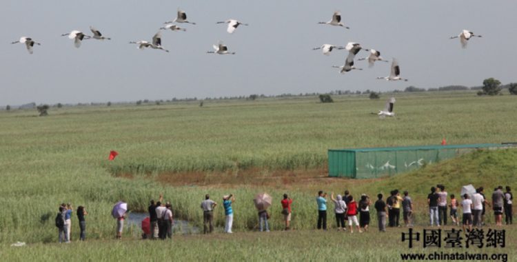 海外臺商一行走進(jìn)扎龍國家自然保護(hù)區(qū),觀賞美禽丹頂鶴。(中國臺灣網(wǎng) 芮益芳 攝)
