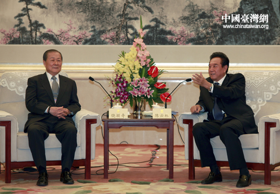 中國臺(tái)灣網(wǎng)8月25日北京消息 25日上午,全國政協(xié)港澳臺(tái)僑委員會(huì)主任、海峽兩岸關(guān)系協(xié)會(huì)會(huì)長陳云林在全國政協(xié)禮堂會(huì)見了臺(tái)灣兩岸民意代表交流基金會(huì)董事長饒穎奇為團(tuán)長的臺(tái)灣民意代表交流參訪團(tuán)一行40人。。ㄖ袊_(tái)灣網(wǎng) 田云鵬 攝)