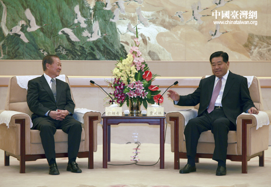 中國臺灣網(wǎng)8月25日北京消息 25日下午,中共中央政治局常委、全國政協(xié)主席賈慶林在全國政協(xié)禮堂會見了臺灣兩岸民意代表交流基金會董事長饒穎奇為團(tuán)長的臺灣民意代表交流參訪團(tuán)一行。(中國臺灣網(wǎng) 田云鵬 攝)