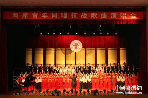 兩岸大學(xué)生聯(lián)合演唱抗戰(zhàn)歌曲(中國臺灣網(wǎng) 郭瑩瑩 攝)