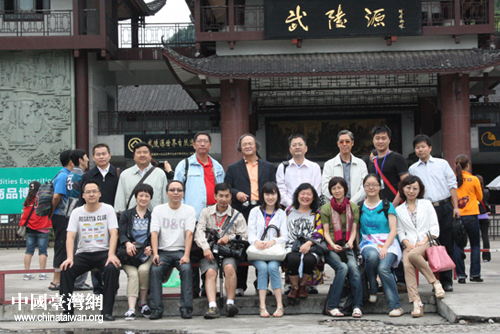 第八屆海峽兩岸媒體湖南聯(lián)合采訪(fǎng)團(tuán)成員在湖南張家界武陵源景區(qū)合影留念。(中國(guó)臺(tái)灣網(wǎng)網(wǎng) 王怡然 攝)