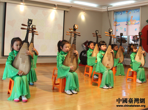 少數名族幼兒園的小朋友表演琵琶合奏《春江花月夜》。(中國臺灣網 芮益芳 攝)