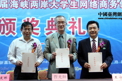 中國臺灣網(wǎng)9月20日北京消息 建行“e路通”杯首屆海峽兩岸大學(xué)生網(wǎng)絡(luò)商務(wù)創(chuàng)新應(yīng)用大賽兩岸總決賽頒獎典禮今日在北京舉行。來自兩岸23所高校共23支隊伍獲獎,其中4支臺灣高校隊伍的成績名列前茅。來自西安郵電學(xué)院的“隨風(fēng)E起沖”團(tuán)隊?wèi){借出色的表現(xiàn),繼奪取大陸賽區(qū)首魁后,越戰(zhàn)越勇,再奪兩岸賽區(qū)冠軍。