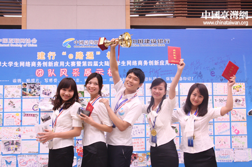 中國(guó)臺(tái)灣網(wǎng)9月20日北京消息 建行“e路通”杯首屆海峽兩岸大學(xué)生網(wǎng)絡(luò)商務(wù)創(chuàng)新應(yīng)用大賽兩岸總決賽頒獎(jiǎng)典禮今日在北京舉行。來(lái)自兩岸23所高校共23支隊(duì)伍獲獎(jiǎng),其中4支臺(tái)灣高校隊(duì)伍的成績(jī)名列前茅。來(lái)自西安郵電學(xué)院的“隨風(fēng)E起沖”團(tuán)隊(duì)?wèi){借出色的表現(xiàn),繼奪取大陸賽區(qū)首魁后,越戰(zhàn)越勇,再奪兩岸賽區(qū)冠軍。