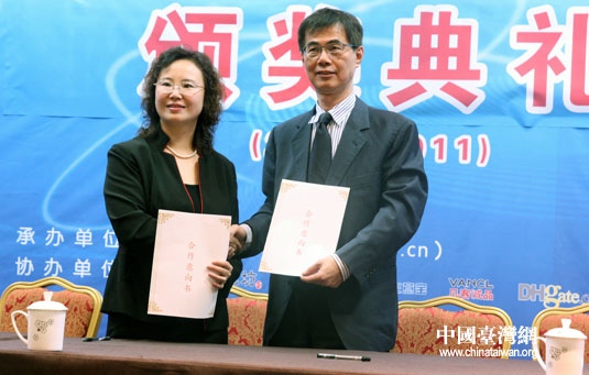 在活動現(xiàn)場,中國臺灣網(wǎng)總經(jīng)理總編輯劉曉輝與臺灣亞洲大學副校長鄧成連教授簽訂了2012海峽兩岸大學生網(wǎng)絡商務創(chuàng)新應用大賽合作意向書。該意向書旨在促進兩岸大學生交流與互相了解,深化兩岸青年對大陸與臺灣商業(yè)環(huán)境、文化環(huán)境的認識,把握“海峽兩岸經(jīng)濟合作框架協(xié)議”(ECFA)簽署后為兩岸帶來的機遇與挑戰(zhàn),推動兩岸互聯(lián)網(wǎng)及其商務應用(電子商務)的發(fā)展與合作,并促進兩岸大學生的社會實踐與商業(yè)創(chuàng)新實踐,提升職業(yè)能力與就業(yè)力。(記者 李丹)