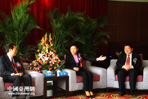 寧夏回族自治區(qū)政府副主席劉慧、國務(wù)院臺(tái)灣事務(wù)辦公室主任助理龍明彪等21日下午在銀川會(huì)見了前來參加第六屆寧臺(tái)經(jīng)貿(mào)合作洽談會(huì)的臺(tái)商代表。(中國臺(tái)灣網(wǎng) 楊麗 攝)