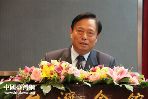 海峽兩岸關系協(xié)會副會長王在希在座談會上致辭。(中國臺灣網 楊麗 攝)