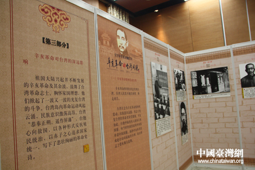 “辛亥革命與臺(tái)灣同胞圖片展”于28日下午在北京臺(tái)灣會(huì)館開展,圖為部分展示內(nèi)容。(中國(guó)臺(tái)灣網(wǎng) 楊麗 攝)