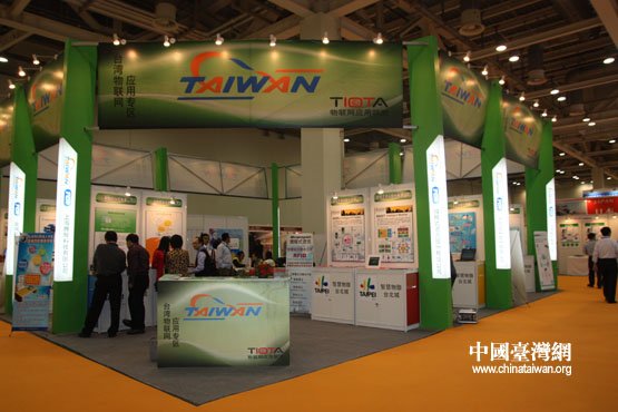 走進(jìn)展覽中心,臺(tái)灣物聯(lián)應(yīng)用專區(qū)展臺(tái)便映入記者的眼簾(中國(guó)臺(tái)灣網(wǎng) 陳寧 攝)