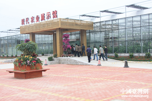 采訪團(tuán)記者興致勃勃地走進(jìn)現(xiàn)代農(nóng)業(yè)展示館。(中國(guó)臺(tái)灣網(wǎng) 王君飛 攝)