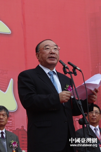 第三屆“重慶·臺灣周”暨臺灣名品博覽會17日上午在重慶國際會展中心開幕,重慶市市長黃奇帆在開幕式上致辭。(中國臺灣網(wǎng) 楊麗 攝)