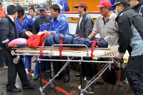 大陸籍邱姓漁工(52歲)右腳骨折。圖片來自臺媒