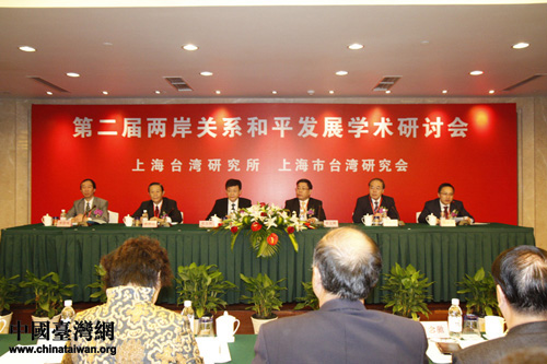 由上海臺灣研究所、上海市臺灣研究會共同主辦的第二屆兩岸關(guān)系和平發(fā)展研討會26日上午在上海召開。(中國臺灣網(wǎng) 李杰 攝)