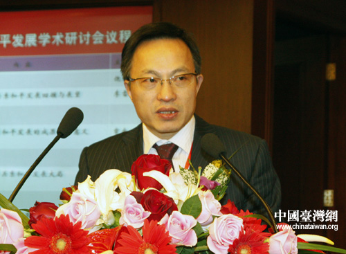 第二屆兩岸關(guān)系和平發(fā)展研討會26日在上海召開,上海臺灣研究所副所長倪永杰在會上發(fā)言。(中國臺灣網(wǎng) 張潔 攝)