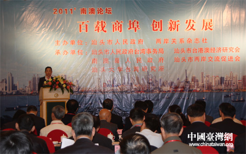 中國(guó)臺(tái)灣網(wǎng)12月8日汕頭消息 12月8日,兩岸知名專家學(xué)者、企業(yè)家以及來(lái)自臺(tái)灣潮汕同鄉(xiāng)會(huì)的嘉賓共120余人齊聚汕頭,參加2011年南澳論壇,圍繞“百載商埠 創(chuàng)新發(fā)展”這一主題開展交流研討,為推動(dòng)汕臺(tái)兩地經(jīng)濟(jì)文化交流,推進(jìn)海西建設(shè)獻(xiàn)計(jì)獻(xiàn)策。
