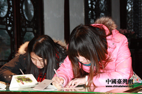 中國(guó)臺(tái)灣網(wǎng)2月4日蘇州消息 由宋慶齡基金會(huì)主辦的“追尋歷史足跡”——城際高鐵之旅活動(dòng)開(kāi)始了第三天的行程。今天,來(lái)自?xún)砂兜那嗄陮W(xué)子參觀了杭州靈隱寺飛來(lái)峰及中國(guó)四大名園之一,蘇州著名的園林拙政園。每到一處,臺(tái)灣的同學(xué)都會(huì)購(gòu)買(mǎi)當(dāng)?shù)靥厣拿餍牌,蓋上當(dāng)?shù)刂包c(diǎn)的郵戳。寫(xiě)滿同學(xué)們內(nèi)心感受的明星片將被寄給他們的父母親朋及大陸的好朋友。真可謂是“小小明信片 郵寄兩岸情”。