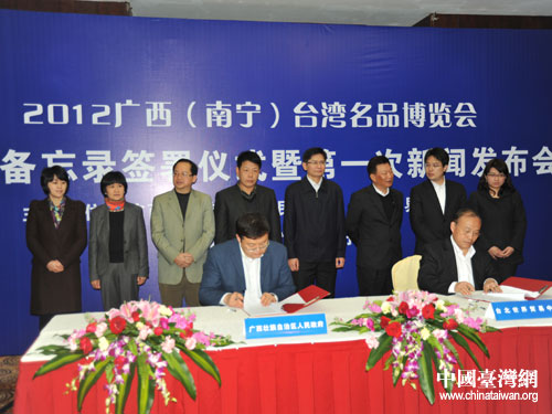 2012廣西(南寧)臺灣名品博覽會合作備忘錄簽署儀式。圖片來源:南寧臺辦
