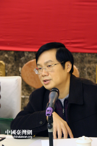 廣東省臺(tái)辦副主任張科向調(diào)研團(tuán)專題介紹粵臺(tái)兩地經(jīng)貿(mào)文化交流情況。(中國(guó)臺(tái)灣網(wǎng) 楊麗 攝)