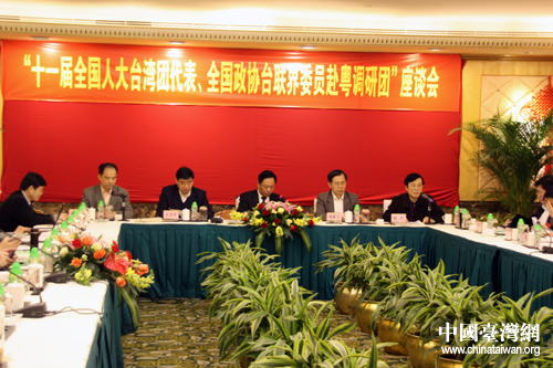 全國人大臺灣團代表、全國政協(xié)臺聯(lián)組委員赴粵調(diào)研團17日在廣州與在粵臺商進行交流。近20名臺商參加了座談。(中國臺灣網(wǎng) 楊麗 攝)