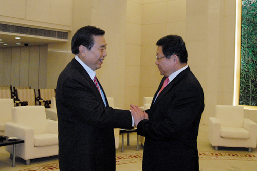 日前,商務(wù)部部長(zhǎng)陳德銘會(huì)見(jiàn)臺(tái)北世貿(mào)中心董事長(zhǎng)王志剛一行,雙方就兩岸產(chǎn)業(yè)合作、推動(dòng)大陸赴臺(tái)投資和采購(gòu)、ECFA后續(xù)協(xié)商等事宜深入交換了意見(jiàn)。圖片來(lái)源:商務(wù)部網(wǎng)站