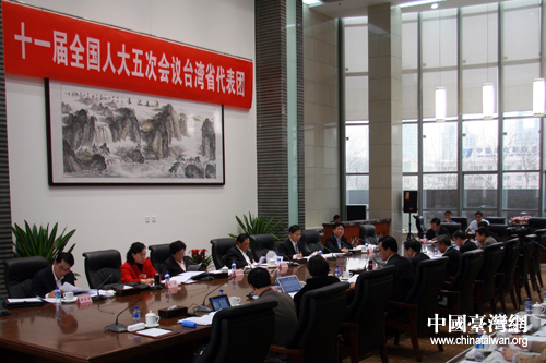 人大臺灣團13位代表5日下午在代表團駐地討論本年度政府工作報告。(中國臺灣網 王偉 攝)