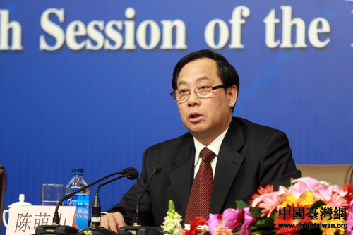 農(nóng)業(yè)部總經(jīng)濟(jì)師、新聞發(fā)言人陳萌山在十一屆全國(guó)人大五次會(huì)議記者會(huì)上,回答臺(tái)灣工商時(shí)報(bào)記者的提問(wèn)。(中國(guó)臺(tái)灣網(wǎng) 王偉 攝)