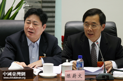 臺籍人大代表陳蔚文(右)和何大欣都將關(guān)注的目光鎖定在海峽西岸經(jīng)濟區(qū)建設(shè)上。(中國臺灣網(wǎng) 王偉 攝)