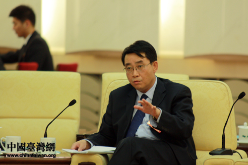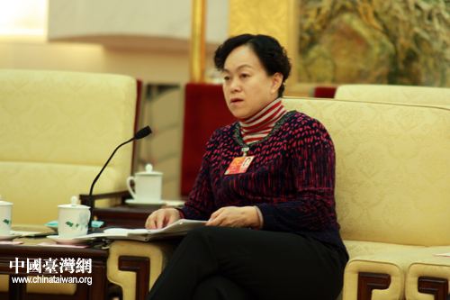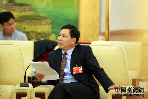 出席十一屆全國人大五次會議的臺灣代表團,10日下午在人民大會堂臺灣廳舉行開放團組活動。朱臺青代表認為,要加快政府職能部門的法制化建設。(中國臺灣網(wǎng) 王偉 攝)