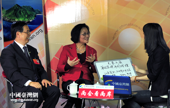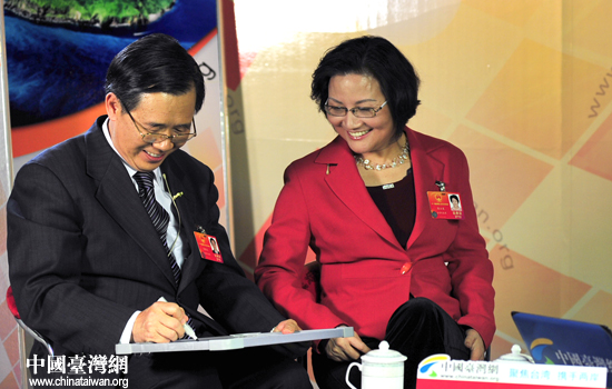 中國(guó)臺(tái)灣網(wǎng)3月11日北京消息 9日,正在參加十一屆全國(guó)兩會(huì)的臺(tái)籍代表陳蔚文、陳云英做客中國(guó)臺(tái)灣網(wǎng),暢談履職感受。兩位代表分別寫(xiě)下“認(rèn)真履職,為兩岸和平發(fā)展獻(xiàn)計(jì)謀策”和“篳路藍(lán)縷、再創(chuàng)輝煌”的字句,并表示,無(wú)論明年能否連任全國(guó)人大代表,都將繼續(xù)為促進(jìn)兩岸關(guān)系發(fā)展、保障臺(tái)胞權(quán)益盡綿薄之力。(記者 田云鵬)