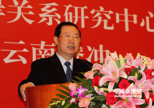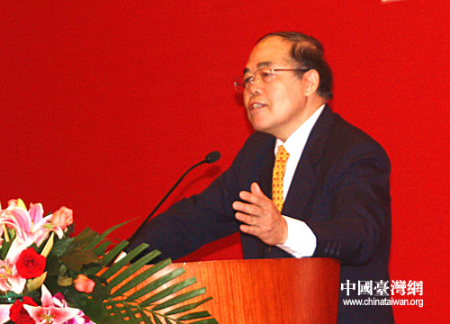 海峽兩岸關(guān)系協(xié)會(huì)副會(huì)長(zhǎng)王在希發(fā)表主題演講。(中國(guó)臺(tái)灣網(wǎng) 高斯斯 攝)