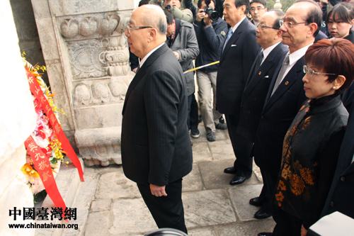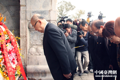 22日上午10時20分許,中國國民黨榮譽主席吳伯雄率領(lǐng)的國民黨大陸訪問團一行攀抵衣冠冢。(中國臺灣網(wǎng) 楊麗 攝)