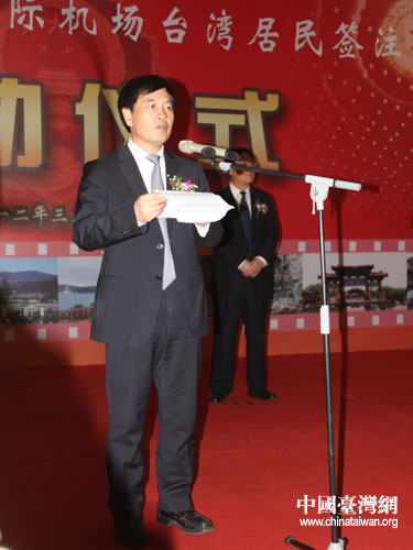 河南省副省長秦玉海在儀式上致辭指出,近年來,河南經(jīng)濟社會快速發(fā)展,已成為全國重要的農(nóng)業(yè)大省、新興工業(yè)大省和有影響的文化大省,越來越多的臺胞來河南旅游、經(jīng)商、探親、尋根拜祖,開通臺灣居民簽注業(yè)務(wù)具有非常重大的現(xiàn)實意義和極其深遠的歷史影響。他要求省公安廳出入境管理部門要始終以服務(wù)豫臺交流、服務(wù)中原經(jīng)濟區(qū)建設(shè)為中心,把機場簽注處打造成服務(wù)豫臺交流和展示河南形象的品牌和亮點。
