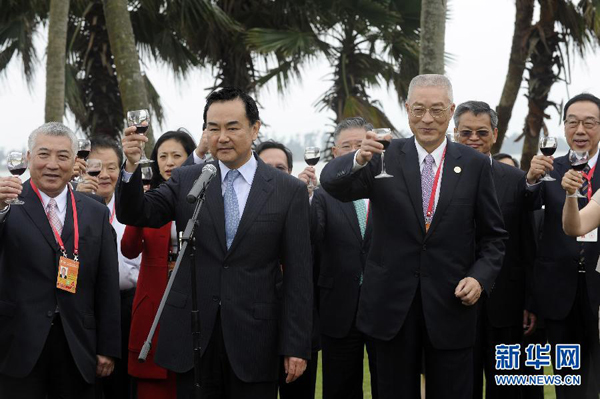 中國臺灣網(wǎng)4月1日博鰲消息 中共中央臺辦、國務(wù)院臺辦主任王毅1日在海南博鰲舉行招待酒會,歡迎前來出席博鰲亞洲論壇的臺灣兩岸共同市場基金會名譽團長吳敦義一行。王毅在招待酒會上即席致辭,以下是致辭全文:
