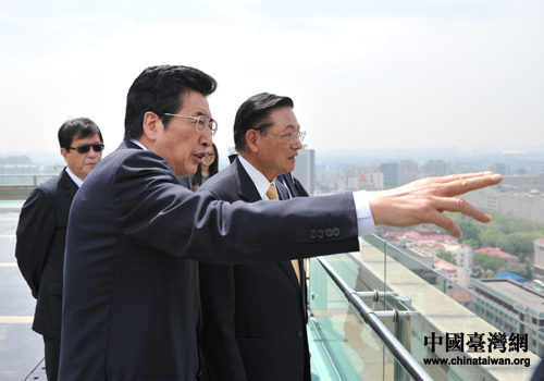 郭金龍陪同江丙坤俯看北京市容。(北京市臺辦 王松 攝)