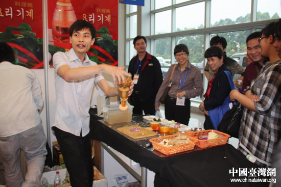 展商賣力演示,向四周參展者推介商品。(中國臺灣網(wǎng) 王思羽 攝)