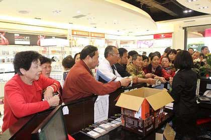金寶來集團(tuán)第2家店今天上午開幕,民眾在柜臺前搶辦購物卡。圖片來自臺媒