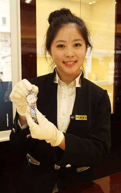 免稅店內(nèi)銷售名貴精品的銷售員吸睛。圖片來自臺媒