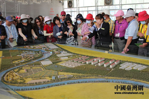 臺灣基層民眾參訪團(tuán)走進(jìn)北戴河集發(fā)生態(tài)園。圖為講解員向大家介紹生態(tài)園規(guī)劃。(中國臺灣網(wǎng)發(fā) 張成標(biāo) 攝)