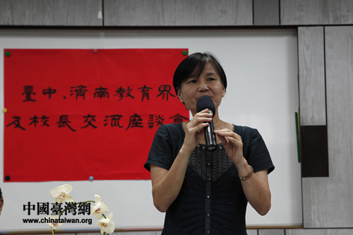 霧峰小學(xué)校長許慰敏向參訪團(tuán)介紹學(xué)校概況(中國臺灣網(wǎng) 邢同林 攝)