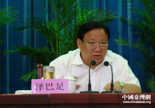 甘肅省委常委、統(tǒng)戰(zhàn)部長澤巴足講話(圖片來源:甘肅省臺辦)
