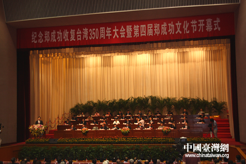 “紀(jì)念鄭成功收復(fù)臺(tái)灣350周年大會(huì)暨第四屆鄭成功文化節(jié)”開幕式現(xiàn)場(chǎng)。(中國(guó)臺(tái)灣網(wǎng) 董子譽(yù) 攝)