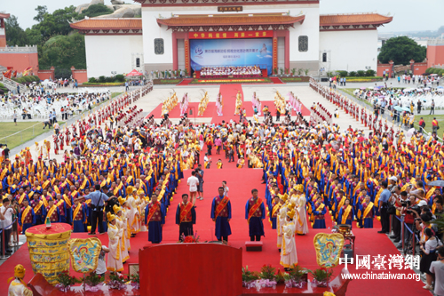 6月15日上午,兩岸媽祖信眾在湄洲島天后廣場(chǎng)舉行了盛大的媽祖祭祀大典。(中國臺(tái)灣網(wǎng) 張潔 攝)