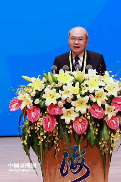 臺(tái)灣保生大帝信仰總會(huì)會(huì)長(zhǎng)廖武治在第四屆海峽論壇大會(huì)上致辭。(中國(guó)臺(tái)灣網(wǎng) 王偉 攝)