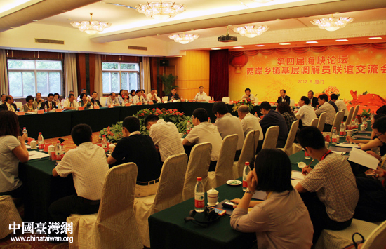 中國臺灣網(wǎng)6月17日消息 第四屆海峽論壇·兩岸鄉(xiāng)鎮(zhèn)基層調(diào)解員聯(lián)誼交流會今日在廈門舉行。來自海峽兩岸的基層調(diào)解員以“ 交流兩岸調(diào)解,共創(chuàng)和諧家園”為主題,就共同關(guān)心的兩岸調(diào)解組織架構(gòu)、調(diào)解范圍、調(diào)解方法和調(diào)解作用等議題進行深入研討,深入挖掘兩岸調(diào)解工作的特色和亮點,互相學(xué)習(xí)寶貴經(jīng)驗,進一步凝聚共識。此次交流會邀請到臺灣調(diào)解同仁60余人,國臺辦法規(guī)局副局長巢小良、司法部基層工作指導(dǎo)司副司長王學(xué)澤出席會議并講話。