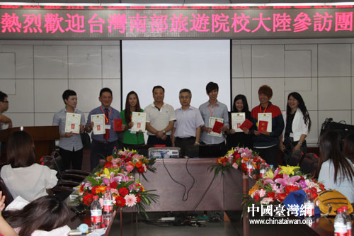 2012臺(tái)灣南部旅游院系在校學(xué)生大陸交流參訪活動(dòng)在京舉辦,6月28日,參訪團(tuán)學(xué)生在北二外進(jìn)行三天的學(xué)習(xí)交流之后,獲得結(jié)業(yè)證書(shū)。(中國(guó)臺(tái)灣網(wǎng) 王曉蕊 攝)