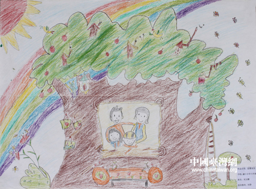 四川汶川小朋友劉玉鵬參展作品《溫馨家園》 (圖片來源:廈門云揚天際文化藝術機構提供)