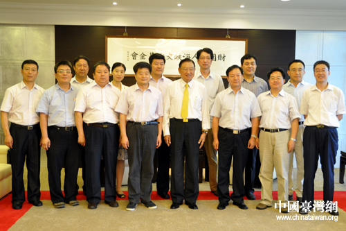 ;鶗麻L江丙坤會見山東省投資保障交流團(tuán)。(圖片來源:山東省臺辦)