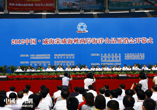 2012中國·威海榮成海峽兩岸海洋食品展銷會在榮成開幕。(圖片來源:威海市臺辦)