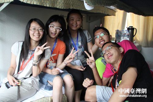 漫長的旅程絲毫未減弱學(xué)生們彼此交流的興致。在火車上,京臺兩地的學(xué)生自發(fā)地組織起來,相互溝通,彼此交流,分享快樂,傳遞友誼。他們把各自準(zhǔn)備好的寫有興趣愛好的小卡片彼此交換,相互介紹北京與臺灣地道的美食、好玩的地方、新奇的故事,彼此贈送了各自從家鄉(xiāng)帶來的紀(jì)念品。很快,陌生拘謹(jǐn)?shù)姆諊惚灰魂囮嚉g聲笑語沖散,車廂里處處洋溢著輕松、歡快的氣氛,清脆爽朗的笑聲和悅耳動聽的歌聲不絕于耳。很多同學(xué)當(dāng)場留下了聯(lián)系方式,約定有機會相聚北京或臺灣,再續(xù)同學(xué)情誼。