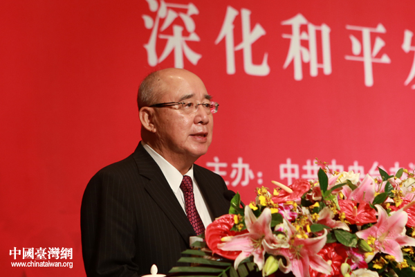 中國(guó)國(guó)民黨榮譽(yù)主席吳伯雄出席第八屆兩岸經(jīng)貿(mào)文化論壇閉幕式并致辭。(中國(guó)臺(tái)灣網(wǎng) 于斯文 攝)